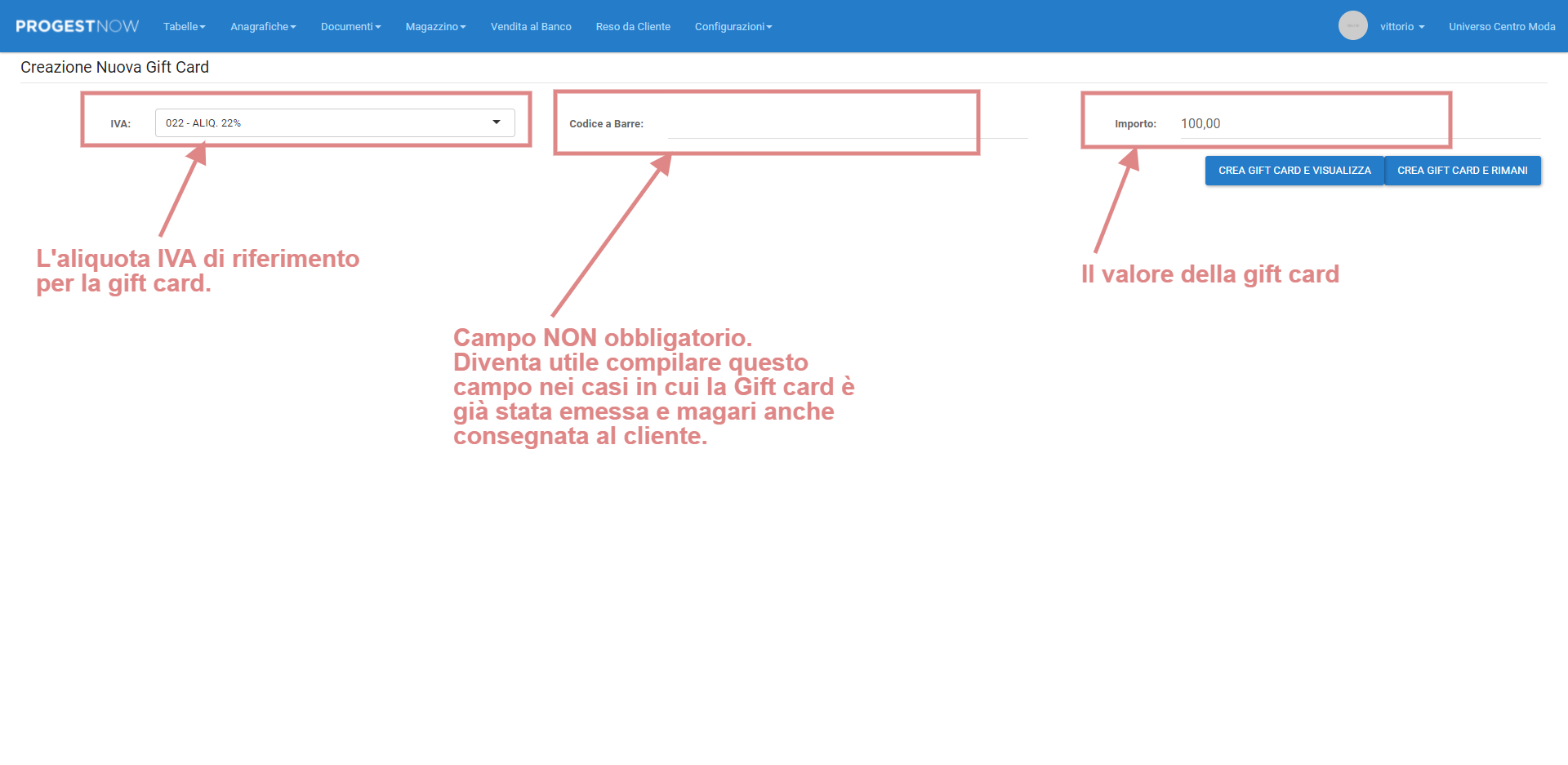 Configurazione ed Utilizzo Gift Card in Documento di Vendita