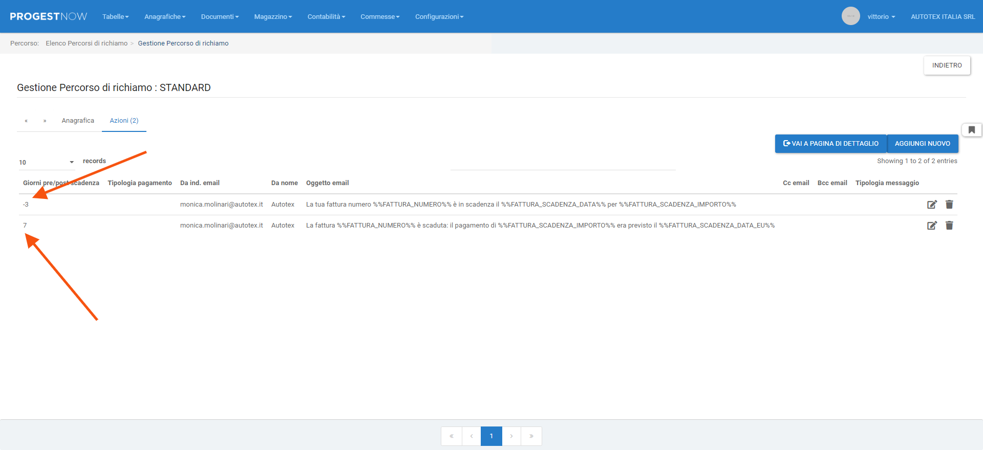 • la seconda 7 giorni dopo la scadenza crea un sollecito.
