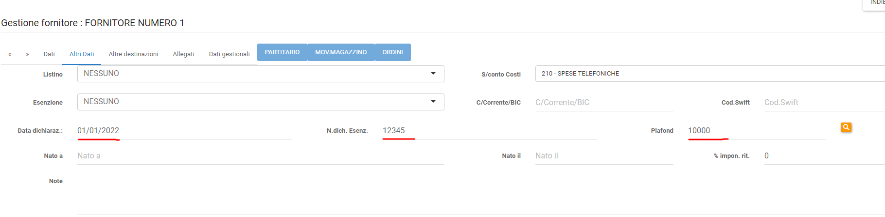 Per la gestione delle dichiarazioni di esenzione esiste una procedura in Stampe fiscali -> Dich. di esenzione che permette di creare in automatico le dichiarazioni da inviare ai fornitori, ne permette la gestione e la generazione automatica dei files .ivi da inviare.
