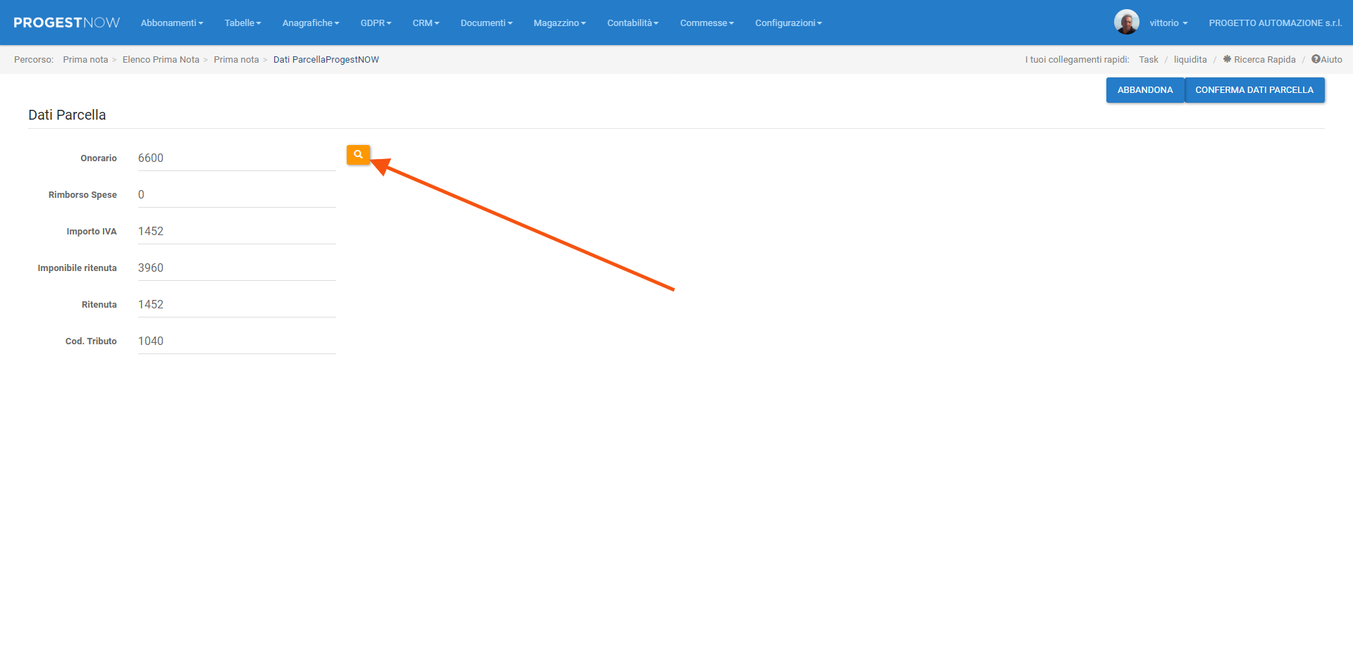 nel caso di pagamento di parcella il bottone permette di recuperare i dati dalla parcella che si sta saldando.